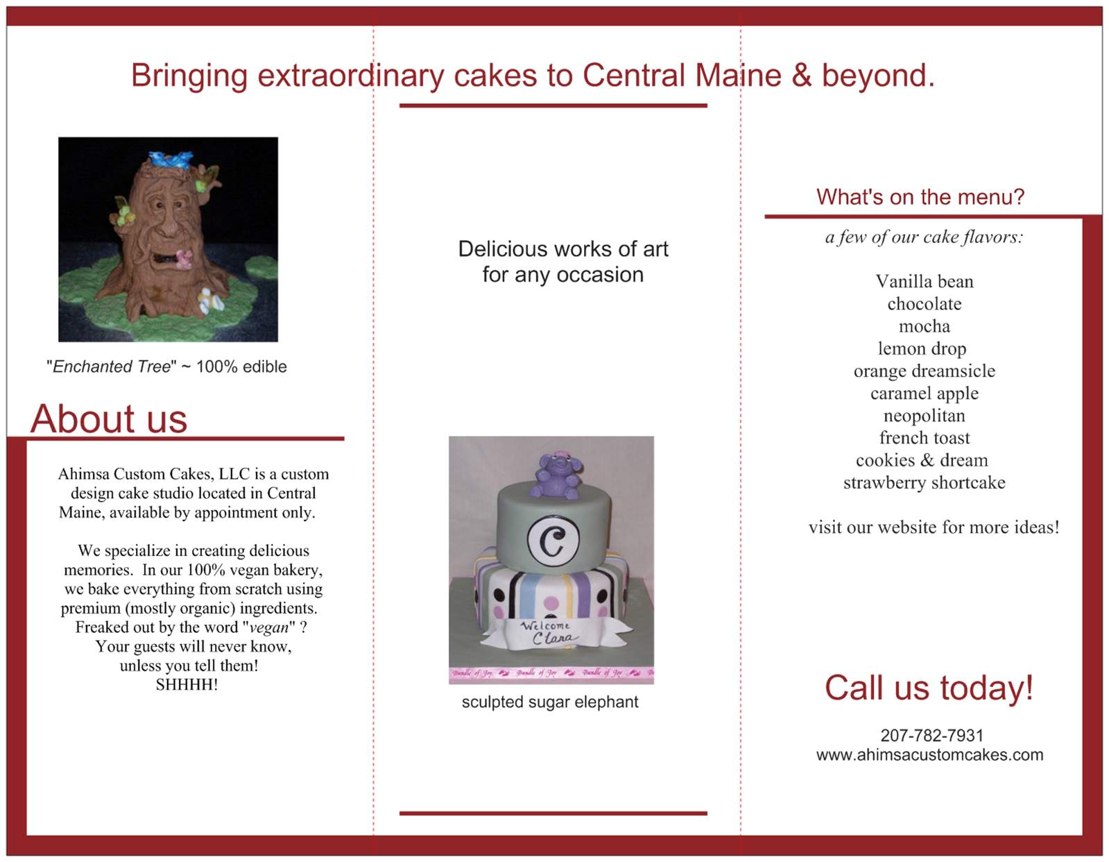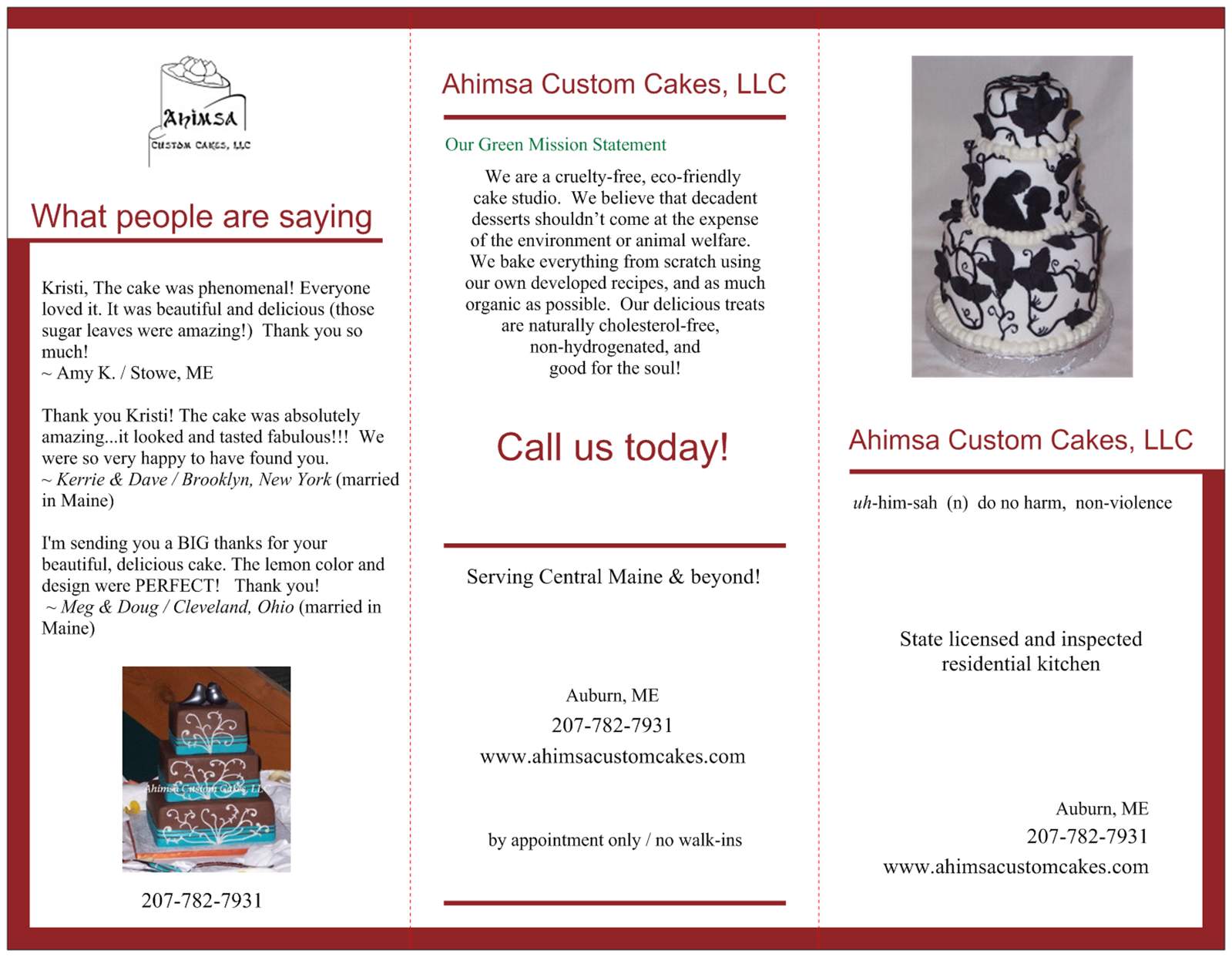 brochure cake cakes ahimsa llc custom maine vegan labels