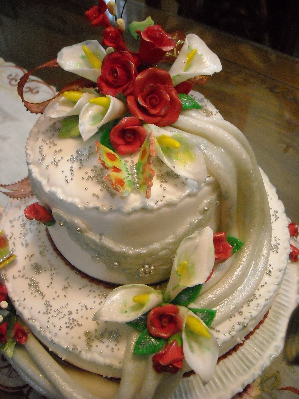 cake maroon cream roses colored gumpaste handmade cakes burgundy sweets