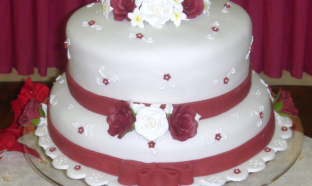 deliciouzbakery: 2 Tier Wedding Cake Theme White & Maroon