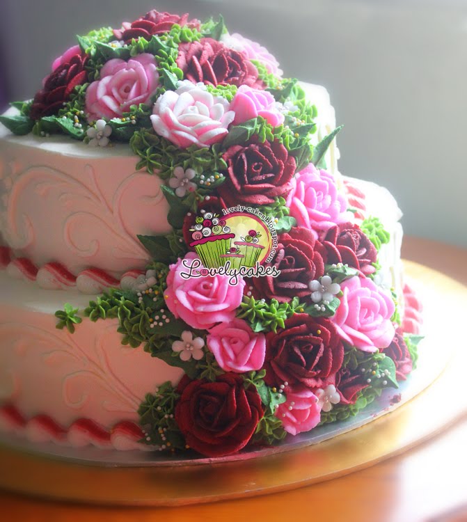 tier cake cakes roses layer maroon theme pink sugarcraft gaborone whose bride soni wc