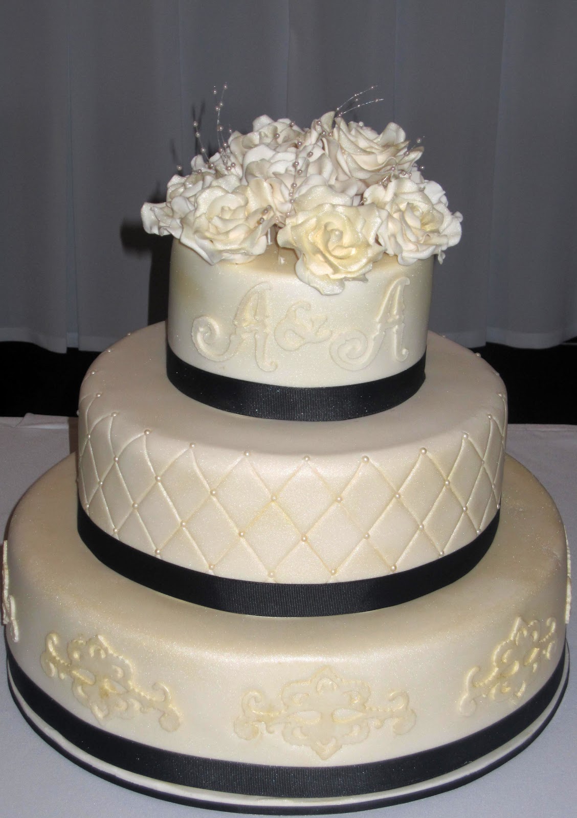 cake fondant bow ivory theme lace zone buttercream bows cakes frosting pearls sugar gorgeous weddings sash dsc ribbons drapes examples